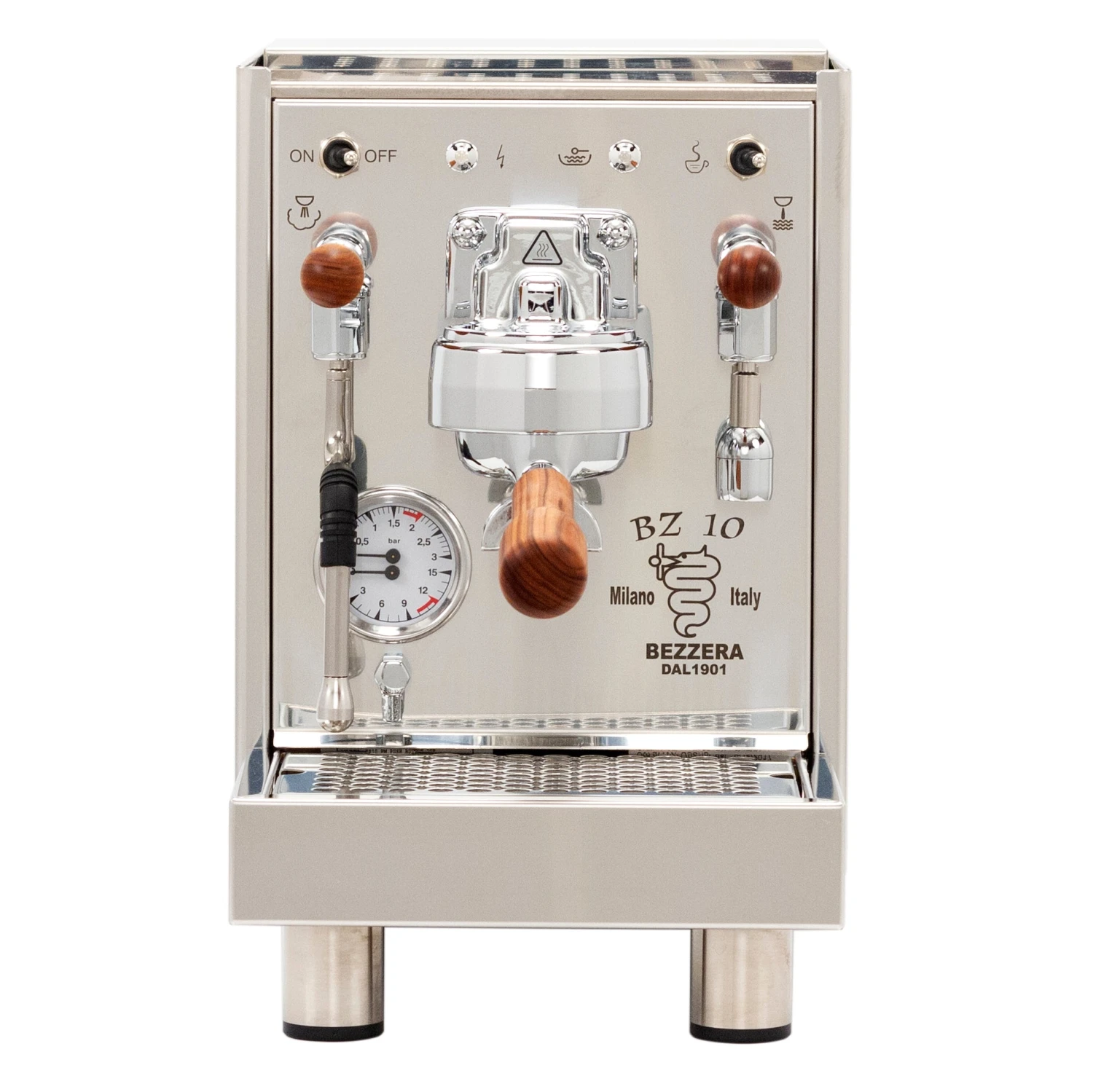 The Bezzera BZ10 is a thoughtfully designed heat exchanger that makes a big splash in the espresso market, in spite of its small footprint. It has all the features you’d expect of a prosumer, but often with a design twist, made possible by Bezzera’s commitment to keeping production in house.