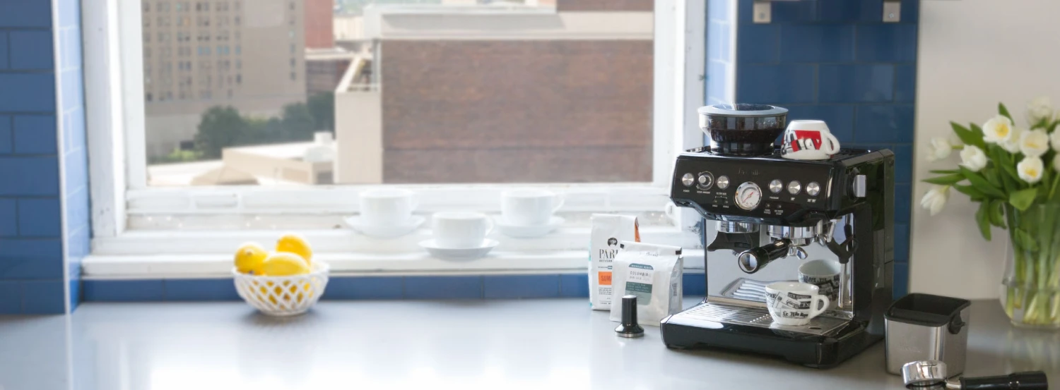 The Breville Barista Express BES870XL has an integrated conical burr grinder with dosing controls so your coffee is ground fresh for every cup. You’ll be able to grind your beans and dose directly into the coffee filter in under 60 seconds! Created with convenience and flexibility in mind, the Barista Express comes with two double-wall filters (single and double shot) that take the guesswork out of tamping—ideal for beginners. But, if you enjoy the art of making espresso, the BES870XL also has a set of single-wall filters that allow you to apply your own tamp. This innovative Breville model has a special tamper with a magnetized lock that can be used attached to the machine, if you intend to work with a double-wall filter. You can also detach the tamper if you prefer a manual tamp or are using a single-wall filter. The Barista Express can be programmed to brew a single or double shot and the grinder settings can be adjusted to suit your needs. With a nice mix of semi-automatic and super-automatic features, the Breville BES870XL is a very well-rounded machine.