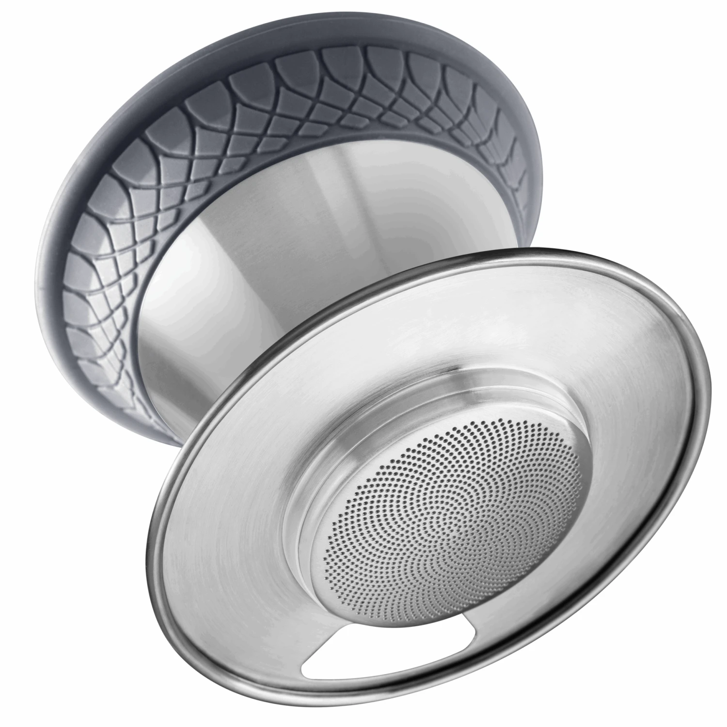 The Espro Bloom Pour Over 18 oz utilizes a durable, stainless steel design and a silicone sleeve around the top for insulation, grip and exterior temperature control.