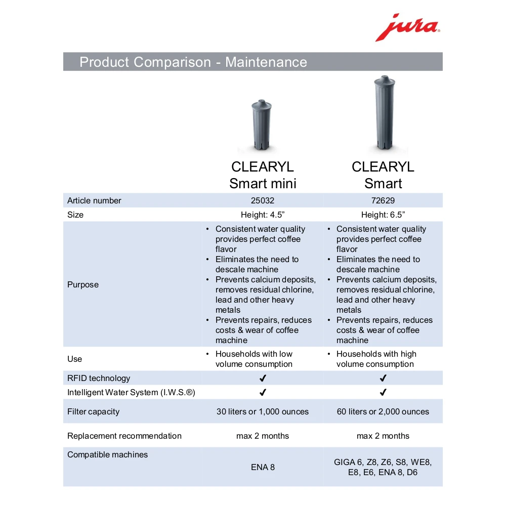 Designed specifically for JURA’s ENA 8 and the Intelligent Water System, the Clearyl Smart Mini is an RFID equipped water filter that automatically syncs with your machine.
