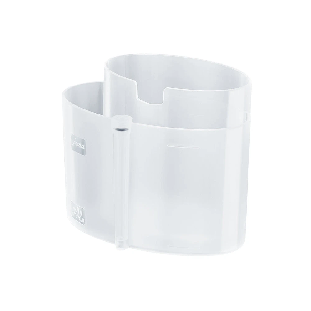 Introduced by JURA to simplify the process of cleaning the milk frothers of their super-automatic espresso machines, this container is designed with a unique 2 chamber design that creates a closed loop between itself and the milk frothing assembly.